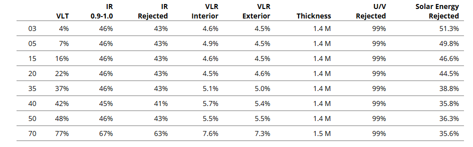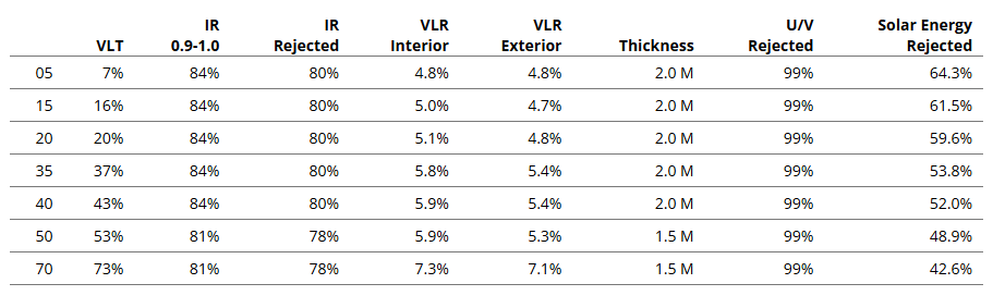 Window Film Performance Data